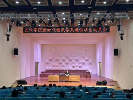 为深入贯彻立德树人根本任务,全面落实学校教风学风建设工作部署,近日,艺术学院在C106音乐厅分场次召开新时代教风学风建设学生动员会。会议以“崇德弘毅 尚美远行——争做新时代优良学风的践行者”为主题,面向设计、音乐表演、舞蹈等专业学生明确学风建设要求,压紧压实学习主体责任,以严实作风推动优良学风蔚然成风,为新时代艺术人才培养筑牢根基。