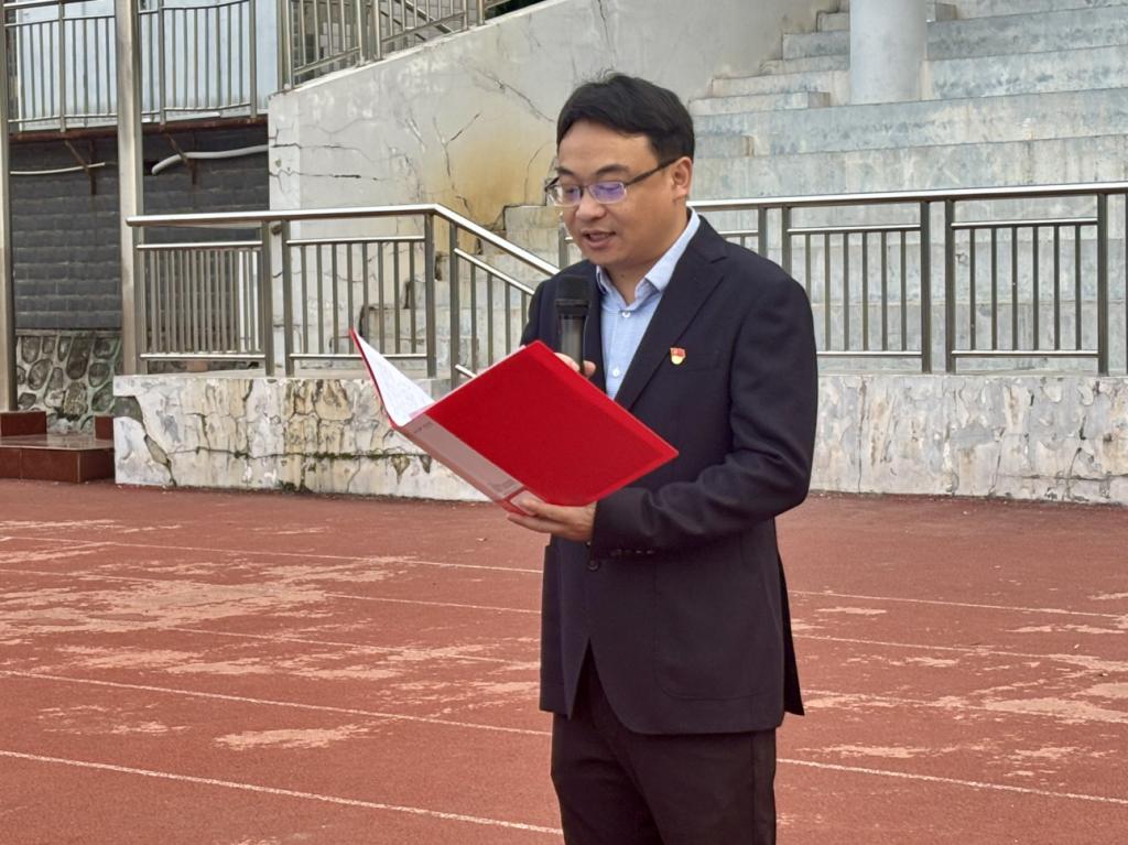 伴随着庄严的《中华人民共和国国歌》,五星红旗迎着朝阳缓缓升起,全体师生庄严肃立、行注目礼,深情凝视国旗,心中满是对祖国的无限崇敬与热爱。