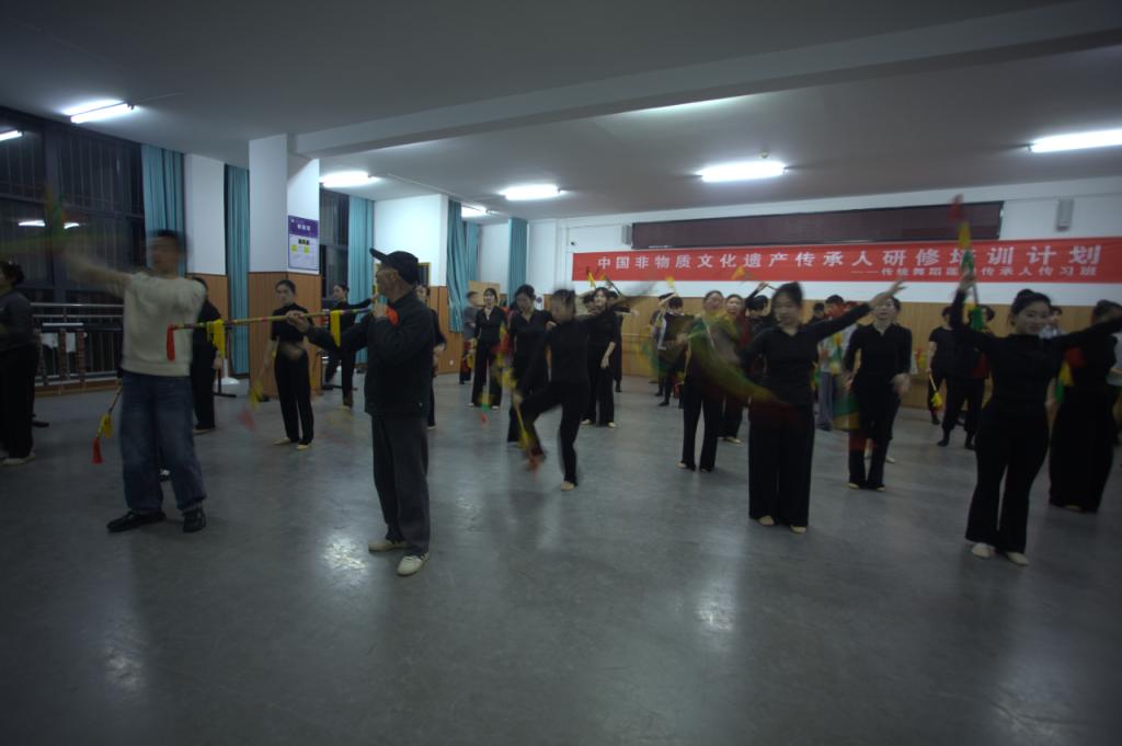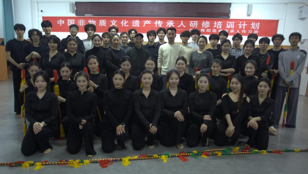 莲湘作为荆门市市级非物质文化遗产代表性传统舞蹈,承载着荆楚地域文化基因与民俗艺术精髓。我校目前是荆门市市级非物质文化遗产保护项目名录传统舞蹈莲湘保护单位。为推动非遗传统舞蹈艺术文化进校园,深化美育育人实践,艺术学院特举办“传统舞蹈莲湘传承研习班”。莲湘传承人杨道美先生1939年出生,已86岁高龄、徒弟李志强1979年生人46岁。诚邀二位作为该项目传承人莅临指导,分享舞蹈技艺、阐释文化内涵,助力我院构建非遗传承教学体系。本次研习班旨在通过莲湘技艺展示、实操教学等形式,让师生感受莲湘舞蹈的具身美学特质,传承非遗文化薪火。