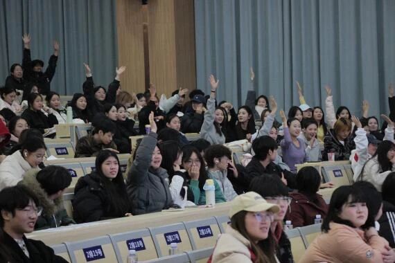 表演间隙,荆楚理工学院体育舞蹈队带来的《拉丁串烧》活力登场,动感的舞姿与明快的节奏为现场注入新的热力;穿插其中的观众问答环节互动热烈,心理健康知识在轻松交流中自然传递,参与互动的观众还收获了专属精美礼品,让现场热度持续攀升。