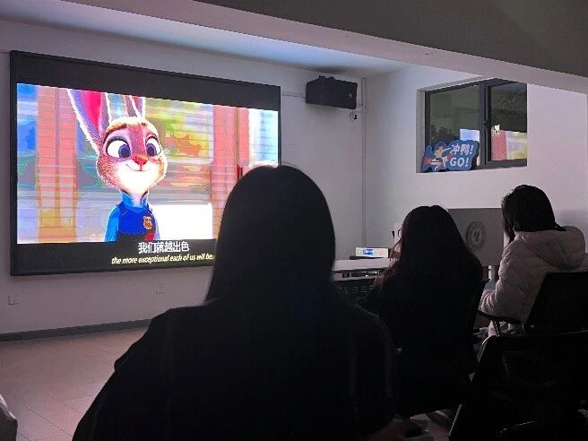 现场,同学们有序就座、全神贯注沉浸在剧情中,时而为朱迪突破偏见、坚持追梦的勇气欢欣,时而为尼克与朱迪从误解到携手互助的友情动容,现场氛围轻松。