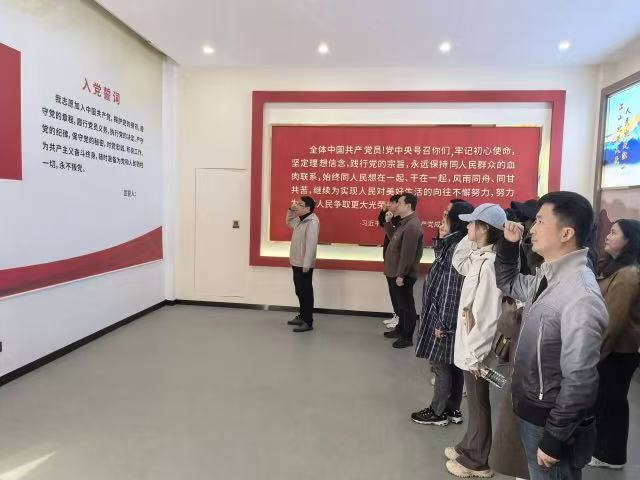 在纪念馆初心教育广场,学院党委书记带领全体党员面向党旗庄严宣誓,重温入党誓词。铿锵有力的誓言回荡广场,既是对移民精神的致敬传承,也是对党员初心使命的再次叩问。党员们纷纷表示,此次活动是一次深刻的精神洗礼与思想淬炼,将把从移民精神中汲取的智慧力量,转化为立足艺术教育岗位的履职动能,在学科建设、人才培养、教学科研等工作中勇挑重担、争当表率。